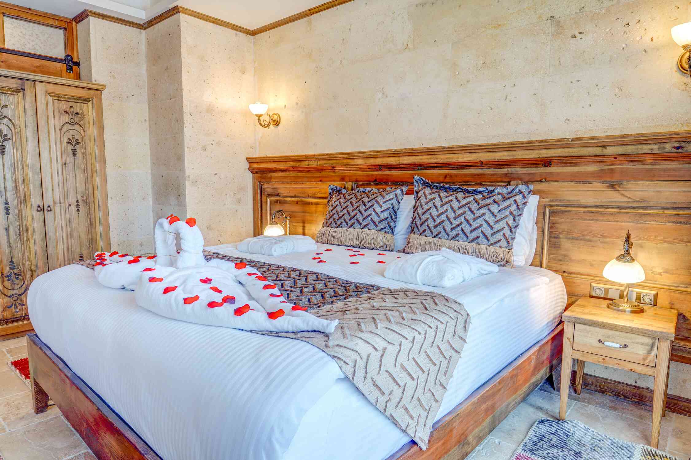 Guests will enjoy modern amenities such as a minibar (for an additional charge), LCD TV with satellite channels, and free Wi-Fi. The room also features a private balcony. The bathroom is equipped with a shower cabin, hairdryer, slippers, and toiletries. The Jacuzzi Family Suite Room is a perfect choice for families looking for a luxurious and relaxing stay in Cappadocia.